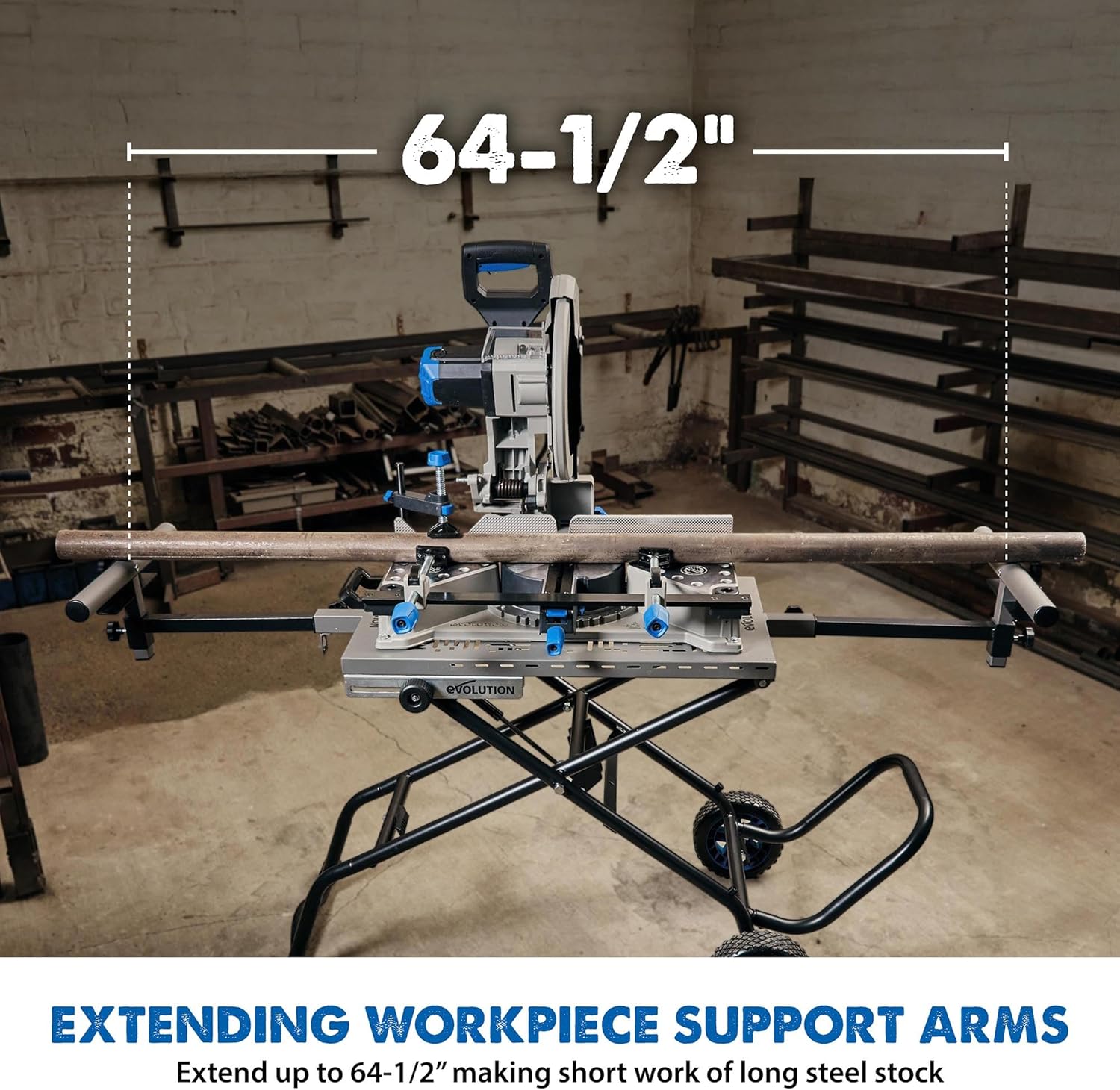- Extendable Workpiece Support with Height Adjustability: Features extendable support arms to handle long materials and adjustable work stops for precise cuts, enhancing functionality for cutting steel, rebar, pipes, and more.